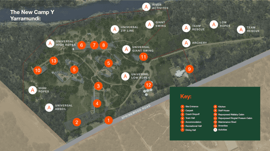 Located on Dharug Land in the Hawkesbury area, this 35 acre site on the Grose River will be able to sleep over 400 overnight guests, feature 11 ropes courses, 4 dining spaces and purpose built for meeting and learning spaces, whilst also offering inclusive activities and programming.